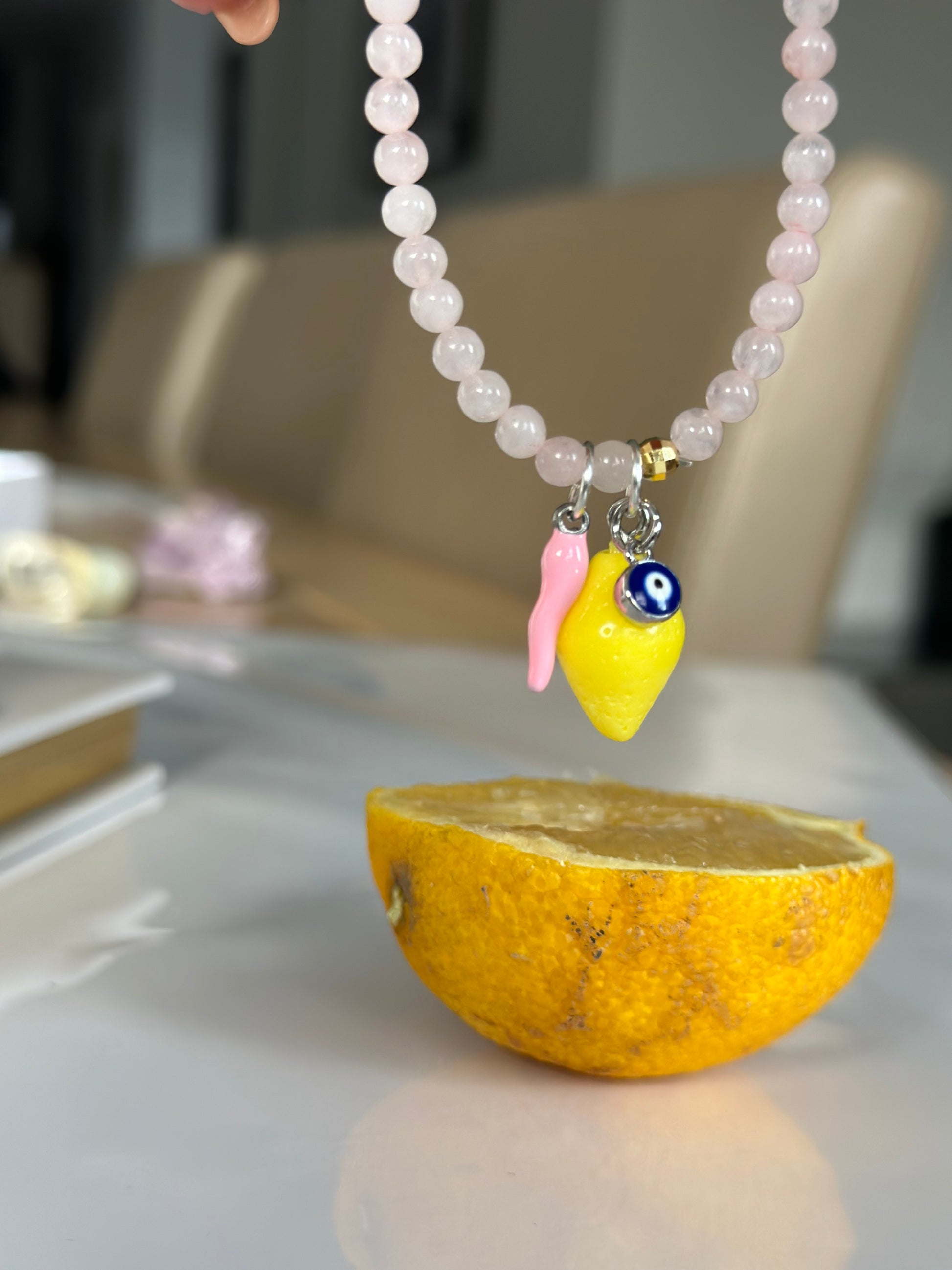 Rose quartz Bracelet w Corno